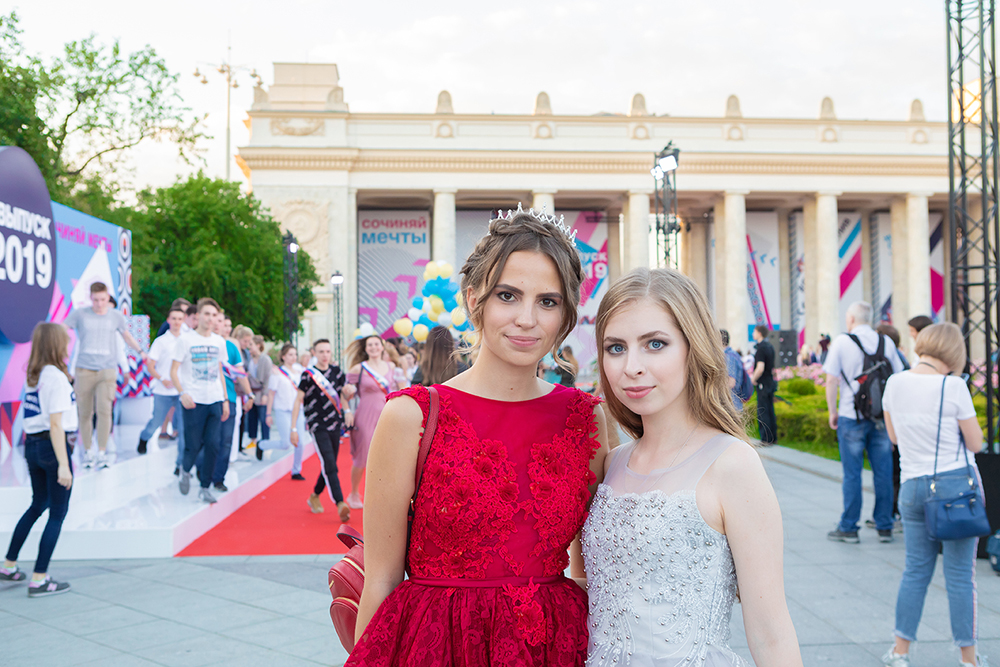Счастливые лица, красивые наряды и большие планы на будущее. Еще вчера они были школьниками, а сегодня делают шаг в новую, взрослую жизнь. Выпускники-2019 вошли в парк по красной ковровой дорожке, как настоящие звезды. Готовиться к торжеству многие из них начали еще задолго до события. Выпускницы школы № 1231 Александра и Анастасия подошли к выбору образа очень ответственно: «Поскольку мы сестры-близнецы, мы так хотели похожие платья! Всю эту красоту сшила наша мама. Мы нашли в интернете примерные модели, а мама воплотила в жизнь. Очень много времени у нее ушло. Но оно того стоило, ведь это наш главный праздник сегодня! А дальше мы хотим освоить специальность конструктора изделий легкой промышленности. Будем продолжать семейное дело».